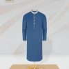Elegant Grey Textured Panjabi with Premium Cotton Blend, Grey with Subtle White Line Patterns